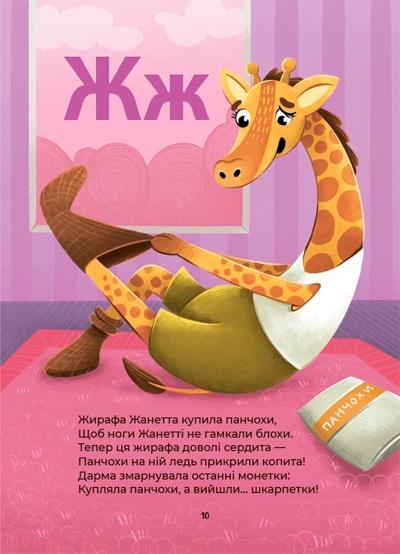 Вивчаймо українську абетку цікаво й весело! Ця книжка сповнена гумору, а кожна її сторінка ознайомлює маленьких читачів з курйозними ситуаціями, у які потрапили не характерні для цього жанру герої: алігатор Анатолій і горила Гертруда, дятел Ден і білка Діна, єнот Єгорка й жирафа Жанетта та інші.