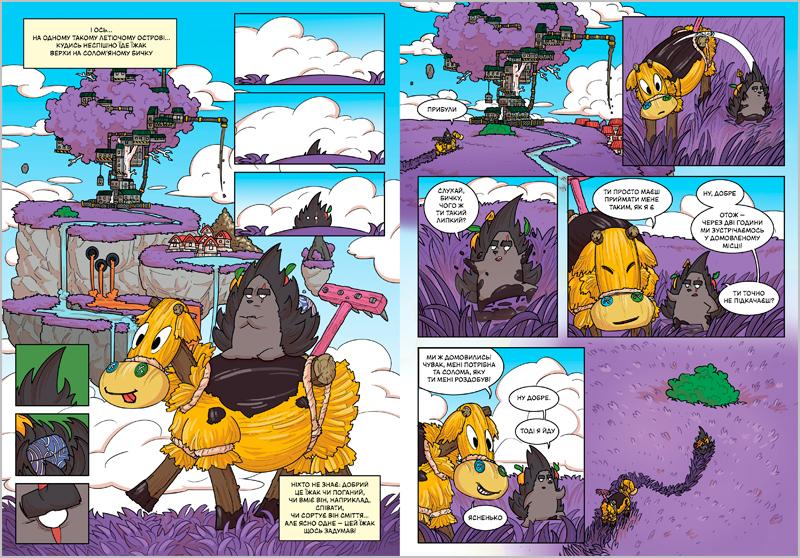 «Десь тут шастає Їжак» — це доісторія мальопису «Троє проти Зла», над яким ми працюємо з 2016-го і намалювали вже понад 600 сторінок. Якщо Ви захочете дізнатись, що ж трапилося з Антоном та Орестом із Сихова у цьому чарівному світі, як вони зустріли Їжачка... то запрошуємо у світ «Троє проти Зла»!