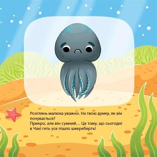 Восьминіжка Чакі переживає різні емоції. Він радіє, сумує, злиться, дивується, боїться. Знайомиться зі своїми почуттями й намагається керувати ними. Разом із Чакі маленькі читачі також дізнаватимуться про різні емоції та вчитимуться приймати їх і давати собі раду.