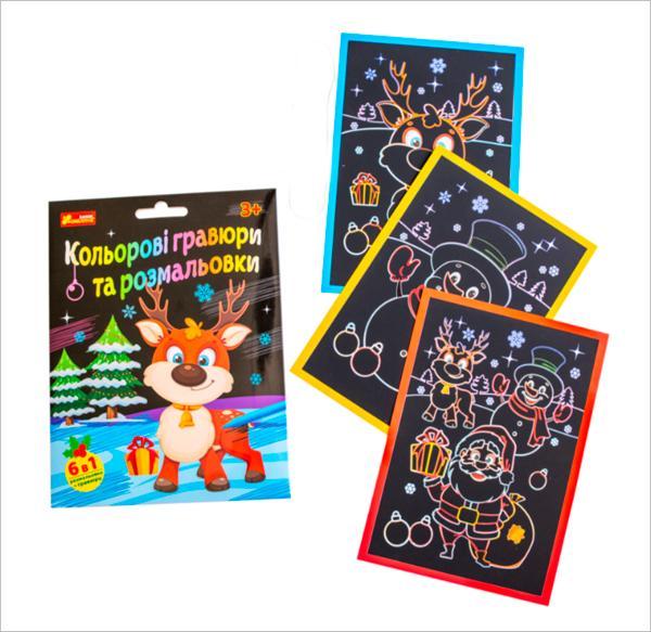 Новорічні кольорові гравюри та розмальовки – це оригінальний творчий набір для дітей від 3 років, який поєднує гру, навчання та святкову магію.