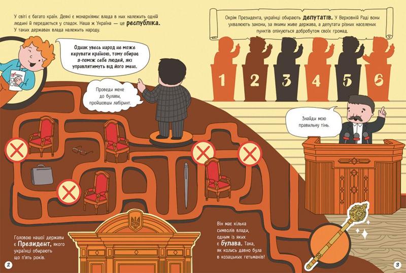 Ця книжка-активіті — перший крок до розуміння нашої державності! Тут малеча дізнається, як функціонує держава, що таке державна символіка, хто такі президенти та як влаштований уряд країни.
