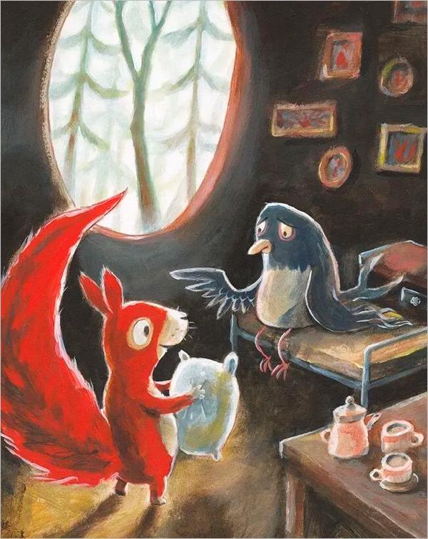 Піно — білченя. Одного разу малюк сумлінно збирав їжу на зиму, аж раптом в око йому впало щось дивне на дереві. Ластівка! Її було поранено, і вона застрягла між гілок. Звісно, Піно вирішив допомогти горопашній і обережно вивільнив її. А потім запросив до себе на гостину, почастував гарячим чаєм, ба навіть запропонував своє ліжко. З того й почалася історія надзвичайної дружби білченя Піно й ластівки Лели.