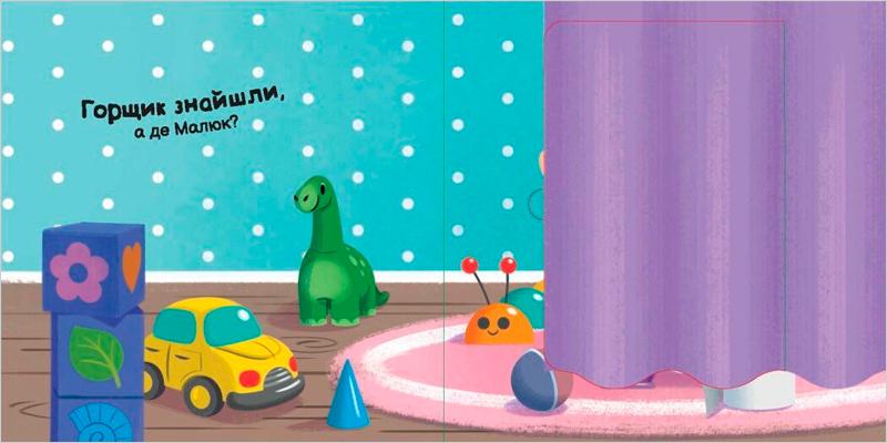 Із цією інтерактивною книжкою малюк звикне до горщика легко й весело – через гру, пошук і наслідування. А коли горщик знайдено - час діяти!