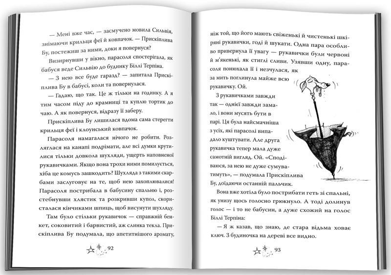 Тож, познайомившись із Сильвією Муншайн і потрапивши до неї додому, парасолька гадала, що її бажання нарешті здійснилося. Одначе невдовзі з’ясувалося, що заволодіти чарівною парасолькою є чимало інших охочих. Вони понад усе прагнули розлучити Прискіпливу Бу з її любою Сильвією, хіба що їй вдасться знайти спосіб їх зупинити…