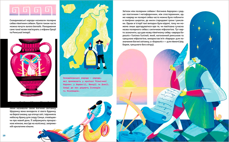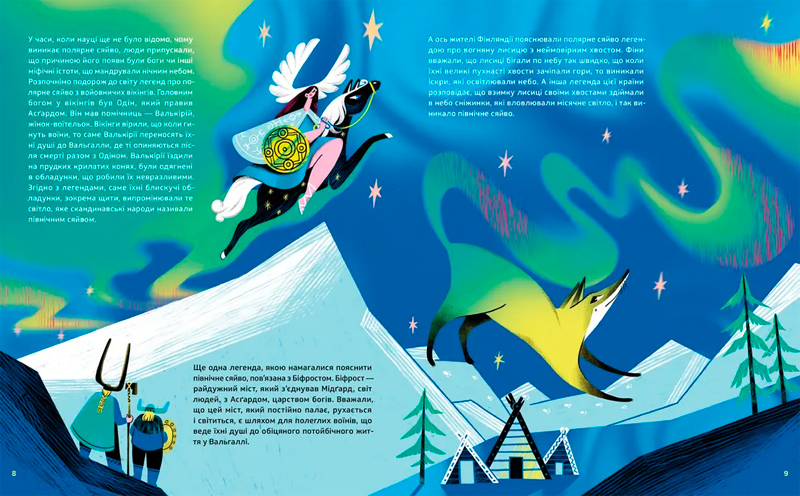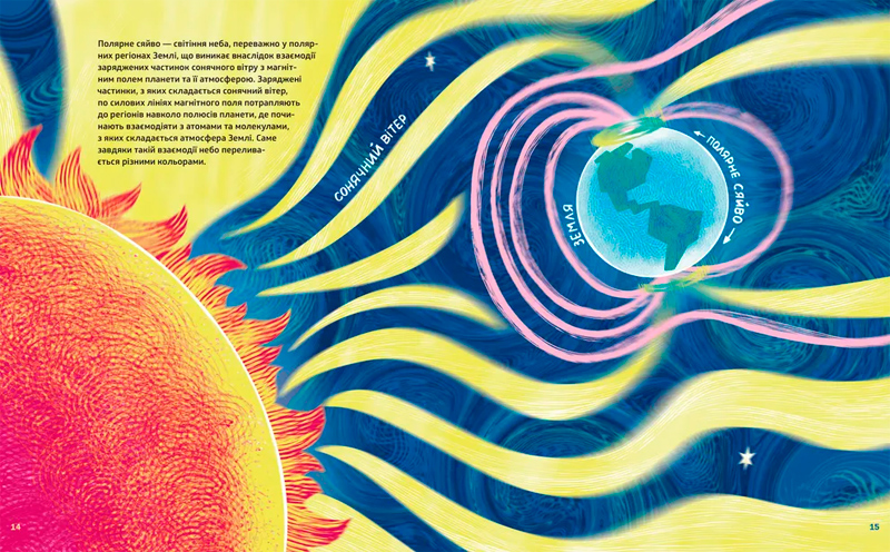 Книжка, яку ви тримаєте в руках, допоможе відповісти на ці та багато інших питань! Вона відкриває завісу над таємницями небесного світіння: від стародавніх міфів північних народів до сучасних наукових досліджень, від сонячного вітру до різних кольорів сяйва, від таємниць до точних пояснень фізики космосу.