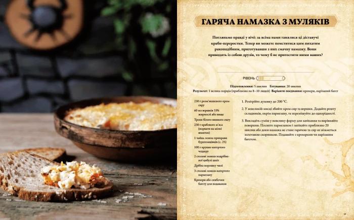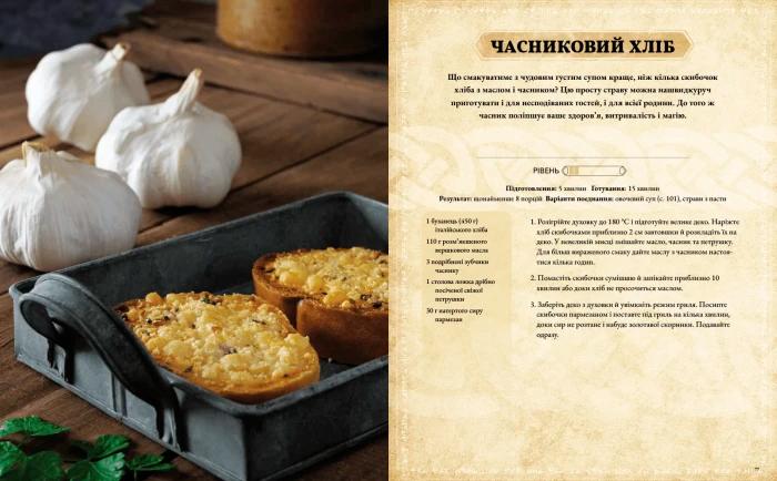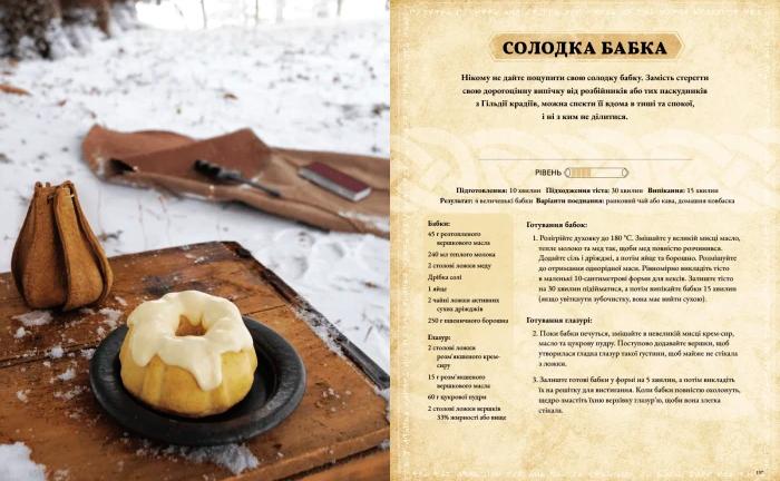 У книзі ви знайдете понад 60 рецептів апетитних страв, які впізнає кожен фанат «Древніх сувоїв»: яблучно-капустяна юшка, сонцесяйне суфле, солодка бабка і ще багато інших.
