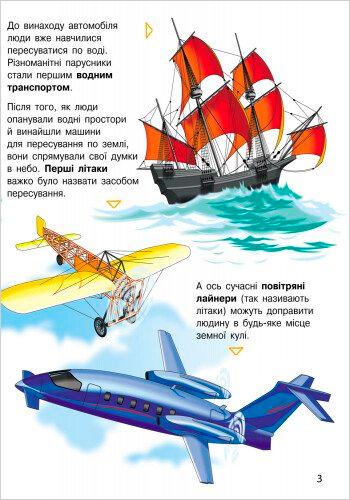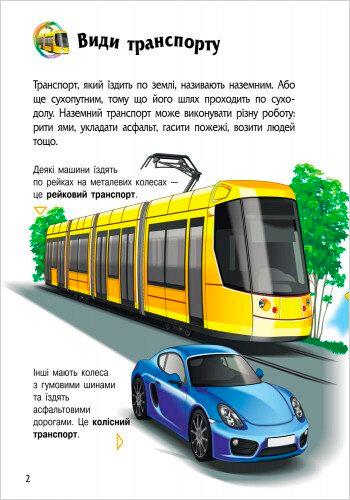 Гадаєте, вашому синочкові чи донечці ще зарано знайомитися з енциклопедіями? Ця книжка стане в пригоді навіть дворічному малюкові! Розглядайте разом ілюстрації, читайте текст і дізнавайтеся багато цікавого про вантажний, будівельний, повітряний, водний, військовий і багато інших видів транспорту, а ще про безпеку поблизу доріг і залізничних колій.