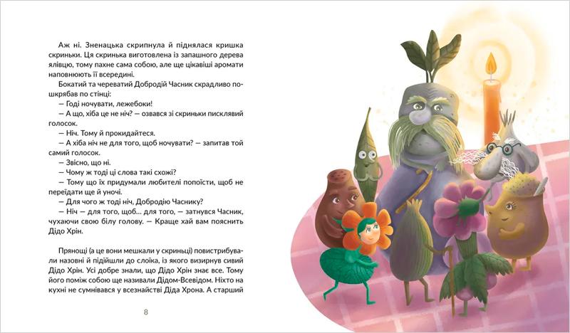 Зненацька скрипнула й піднялася кришка ялівцевої скриньки, а звідти показалися Добродій Часник, Червонолика Паприка, Дідо Хрін, Барон Кардамон, Сестриця Гірчиця, Матінка Сіль та інші. Настала ніч історій, коли приправи, прянощі та спеції — поважне Зілля — розкажуть про своє походження, корисні властивості та поділяться мудрістю на щодень.