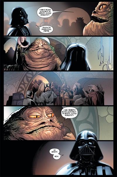 Та все це — лише верхівка айсберга. Деякі сили в Імперії зовсім не зацікавлені в тому, щоб Вейдер дізнався всю правду. У цьому томі з’являються знайомі персонажі: Джабба Гатт, Боба Фетт та інші знакові фігури всесвіту Star Wars.