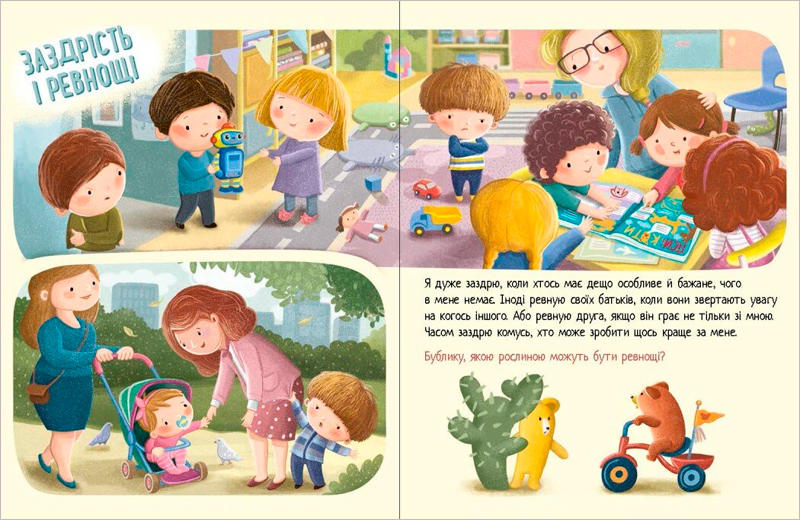 Радість, гнів, гордість, сум... Щодня маленький Дмитрик проживає десятки емоцій і ділиться ними зі своїм вірним другом — іграшковим ведмедиком БуБликом. Бублик знає, що сум схожий на дощовий день, а радість — на солодкий смак улюблених ласощів, і пояснює складні емоції просто та зрозуміло. А спеціальні поради для батьків стануть місточком до довірливого спілкування з дитиною. Корисна книжка, що навчить малюка слухати своє серце й добре розуміти сеБе та інших!
