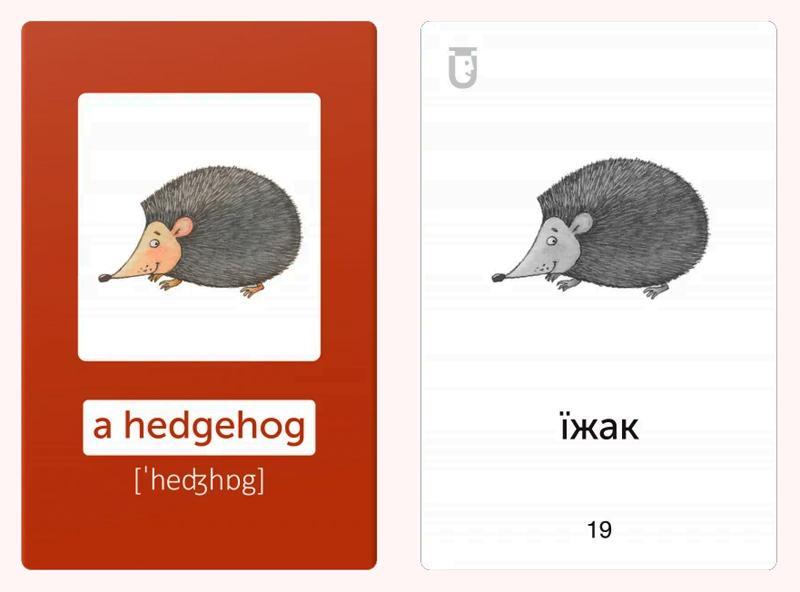 З одного боку – ілюстрація, слово та транскрипція, а з іншого – переклад. На звороті пакування є Qr-код із аудіосупроводом. Усе, щоб малюки звикали до правильної вимови одразу. А яскраві ілюстрації допомагають візуально запамʼятовувати англійські слова.
