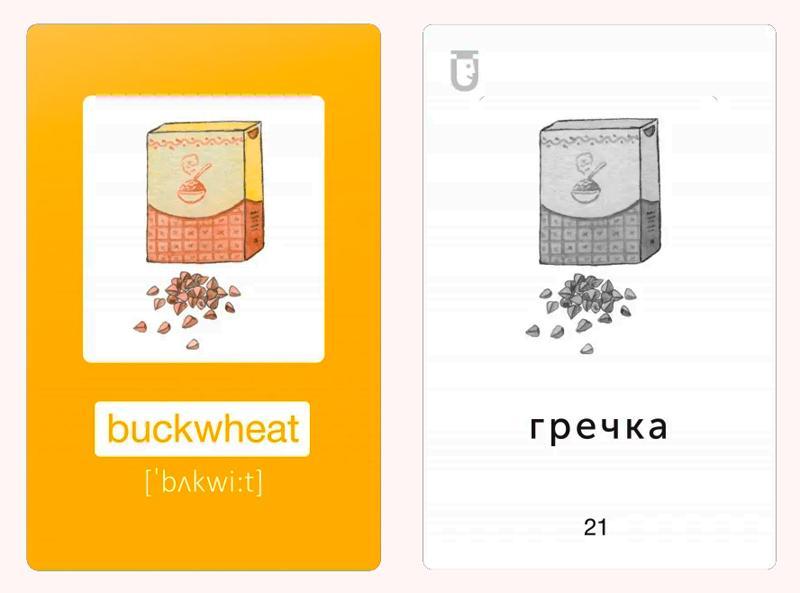 З одного боку – ілюстрація, слово та транскрипція, а з іншого – переклад. На звороті пакування є Qr-код із аудіосупроводом. Усе, щоб малюки звикали до правильної вимови одразу. А яскраві ілюстрації допомагають візуально запамʼятовувати англійські слова.