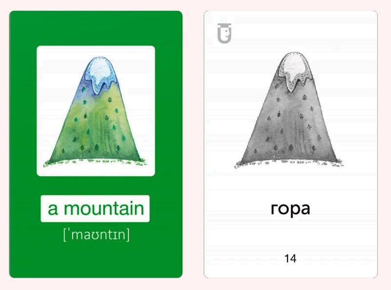 З одного боку – ілюстрація, слово та транскрипція, а з іншого – переклад. На звороті пакування є Qr-код із аудіосупроводом. Усе, щоб малюки звикали до правильної вимови одразу. А яскраві ілюстрації допомагають візуально запамʼятовувати англійські слова.
