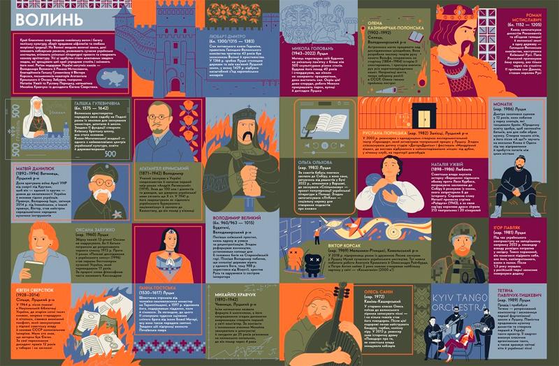 Кожен герой — окрема історія сили, таланту й наполегливої праці. Ми свідомо розширили географію: розповіли про тих, хто народився в певному регіоні, хто приїхав і залишив там слід, а також про тих, хто покинув рідну землю, але назавжди зберіг її в серці.