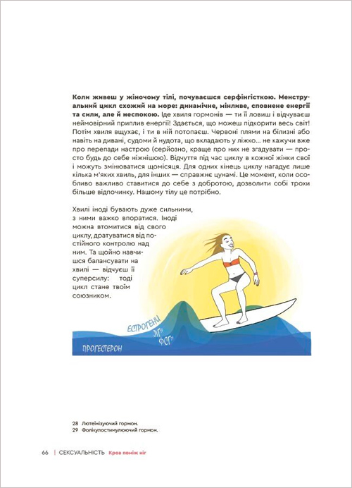 Це книжка про справжню сексуальність — таку, де є ніжність, взаємоповага та радість від близькості. Тіло, кохання, спілкування, бажання, сексуальна орієнтація, перший раз, згода, задоволення, порно, зґвалтування — це видання без табу й у доступній формі пояснює все, що варто знати про сексуальність та стосунки.