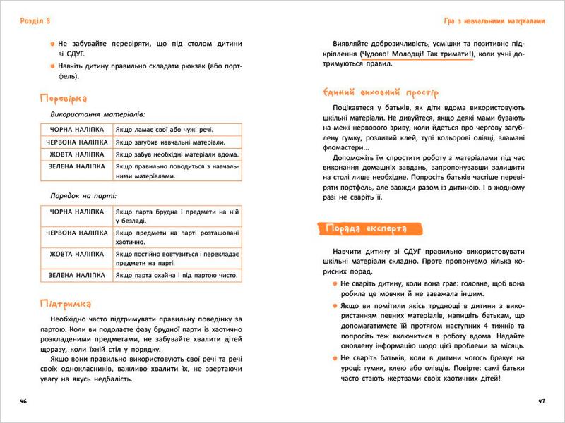 Автор пропонує методичні рекомендації та інструкції, використовуючи які, ви зможете покращити 15 форм проблемної поведінки, що є типовими для учнів із синдромом дефіциту уваги і гіперактивності.
