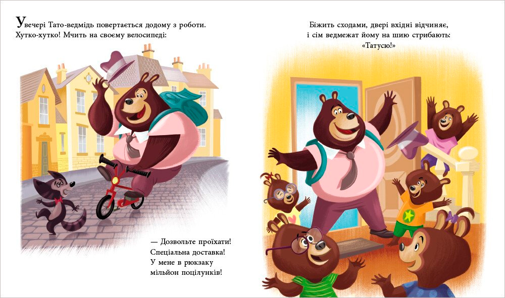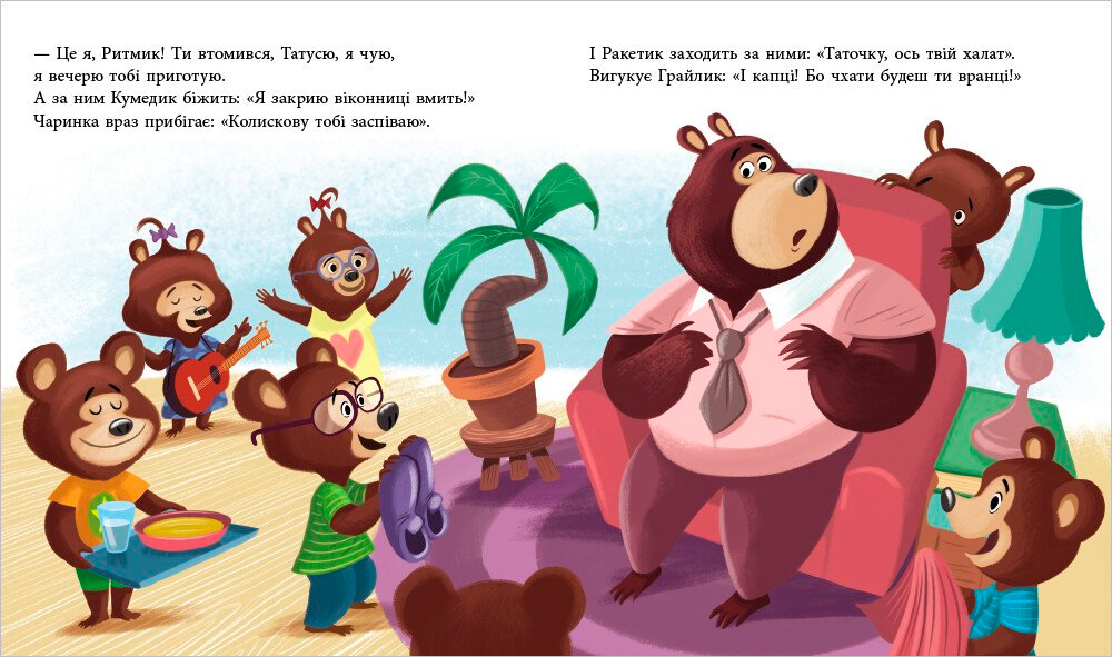 Історія французької письменниці Карін-Марі Амйо про теплі родинні стосунки тата-ведмедя і його ведмежат. Щовечора татусь-ведмідь поспішає з роботи, аби провести час зі своїми бешкетниками-ведмежатами.
