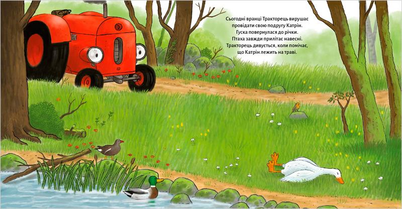 Одного ранку Тракторець застає гуску Катрін у траві біля річки. Птаха вже нежива.