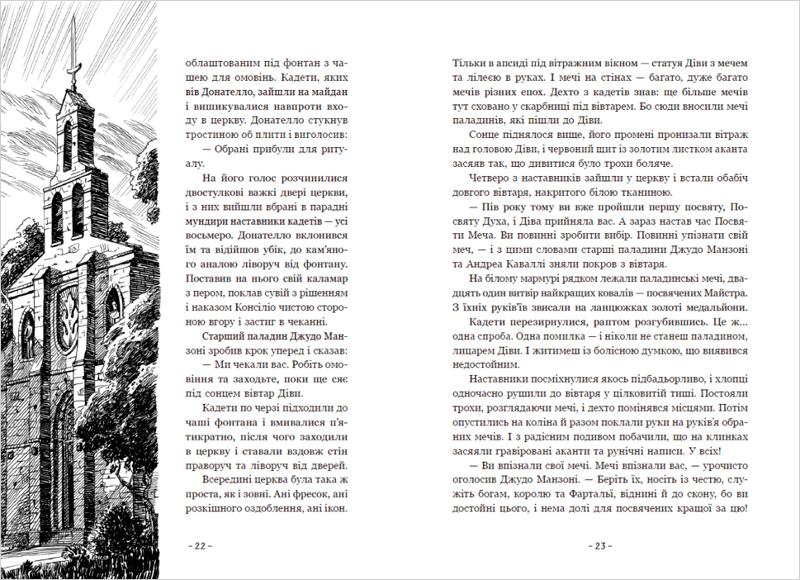 Шалені пригоди й битви зі злом, нудні лекції й виснажливі тренування з мечем і бойовим заклинанням…. Таке воно, життя студентів — майбутніх лицарів Діви. Про його перипетії повідав нам таємничий метр Грахілья, автор знаменитої серії книг про відважних юнаків, які забажали стати учнями Корпусу Паладинів. Але для завершення навчання самого бажання мало. Треба витримати суворий вишкіл і пройти Посвяту Духа та Посвяту Меча. І от не встигли майбутні оборонці людства відсвяткувати церемонію Посвяти, як їх з вогню та в полумя — давай, підтверджуй ділом право на щойно здобутий меч. Та ще й завданнячка мудрі наставники підбирають… Бестію в підвалі убити, з полтерґейстом розібратися, а то й у склепі початувати…